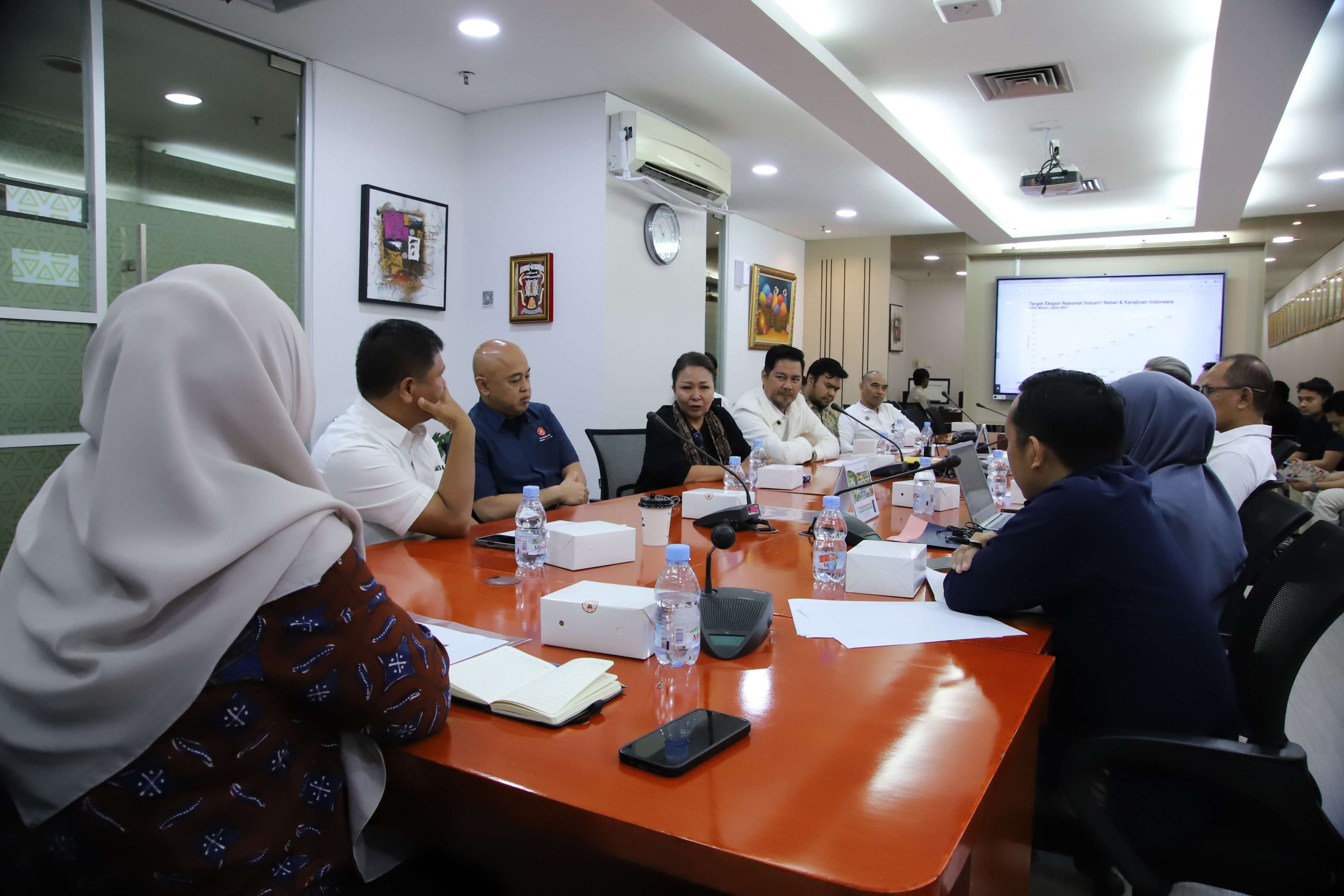 Direktur Jenderal Pengembangan Ekspor Nasional, Fajarini Puntodewi menerima audiensi Himpunan Industri Mebel dan Kerajinan Indonesia (HIMKI) di Kantor Kementerian Perdagangan, Jakarta pada Rabu (21 Jan). Audiensi tersebut membahas penguatan promosi ekspor produk furnitur, mebel, dan kerajinan nasional melalui Trade Expo Indonesia (TEI) sebagai salah satu instrumen strategis yang terus dioptimalkan. Pada kesempatan ini Ketua Umum HIMKI, Abdul Sobur menyampaikan sejumlah isu utama dalam pengembangan , antara lain aspek keberlanjutan (sustainability), green financing, penerapan European Union Deforestation Regulation (EUDR), ketersediaan bahan baku, serta pemenuhan standar dan regulasi global. Dirjen PEN menegaskan komitmen pemerintah untuk terus mendorong penguatan promosi produk furnitur, mebel, dan kerajinan Indonesia di pasar global. Melalui TEI 2026 dengan spesifik berbasis produk dan ekosistem industri diharapkan mampu meningkatkan efektivitas promosi serta pelaksanaan kegiatan business matching. Sektor furnitur, mebel, dan kerajinan saat ini menyerap sekitar 2,1 juta tenaga kerja, dengan nilai ekspor mencapai sekitar USD 3 miliar dan tingkat pertumbuhan sekitar 6 persen. Amerika Serikat masih menjadi pasar utama dengan pangsa sekitar 54 persen dari total ekspor sektor tersebut. Turut hadir dalam kegiatan ini Direktur Pengembangan Ekspor Produk Manufaktur, Deden Muhammad Fajar Shiddiq.