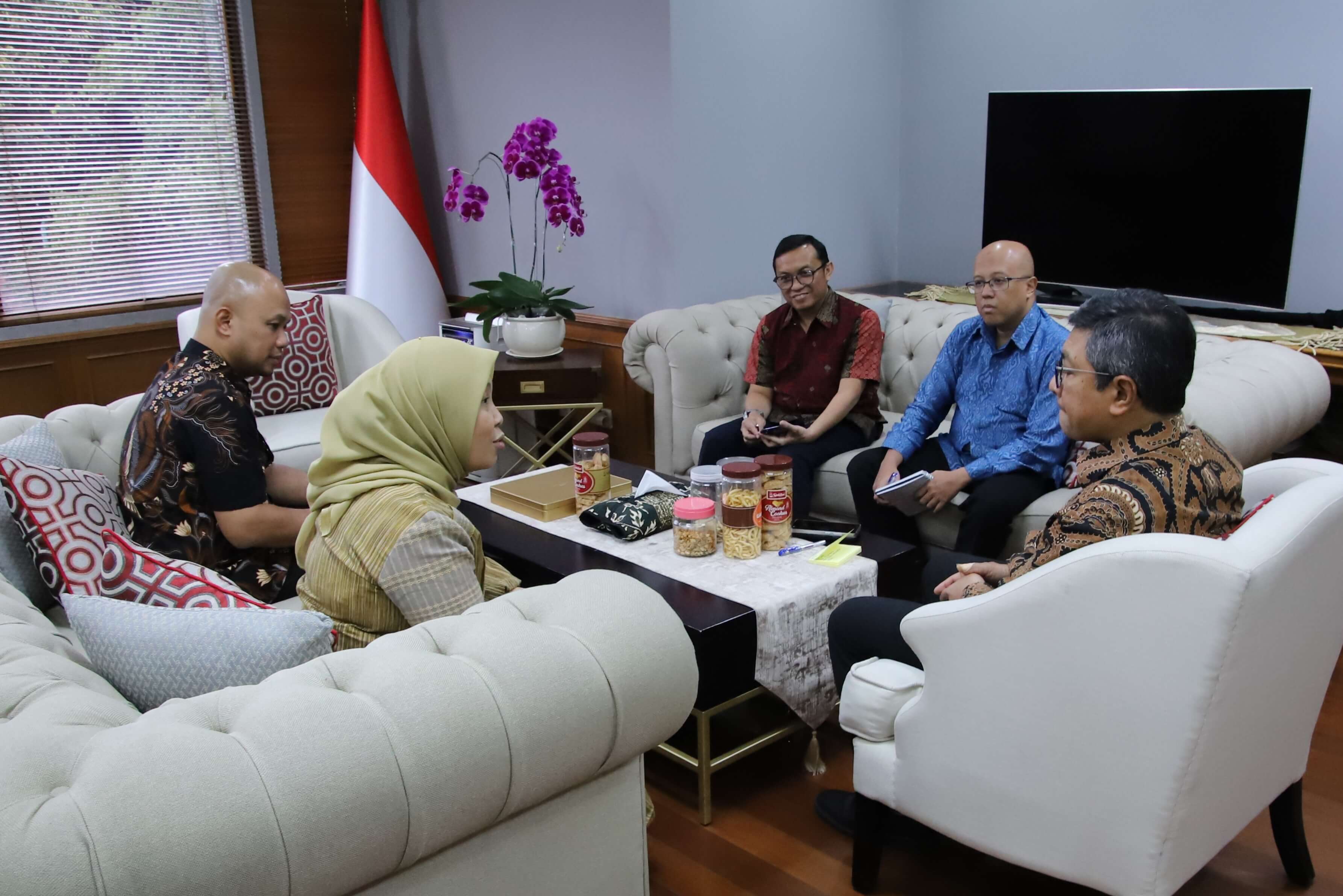 Direktur Jenderal Pengembangan Ekspor Nasional, Fajarini Puntodewi melakukan pertemuan dengan Sekretaris Jenderal Kementerian Luar Negeri, Denny Abdi di kantor Kementerian Luar Negeri Jakarta pada Selasa, (3 Feb). Pertemuan ini bertujuan untuk mendapatkan pandangan, masukan, serta mendiskusikan sinergi strategi pengembangan ekspor di luar negeri. Pada kesempatan ini, Dirjen Puntodewi menyampaikan program kerja Kementerian Perdagangan tahun 2026 terkait strategi pengembangan ekspor. Adapun Sekretaris Jenderal Kemlu Denny Abdi menyampaikan masukan dan dukungan Kementerian Luar Negeri dalam program pengembangan ekspor Nasional. Turut hadir dalam pertemuan, Sekretaris Direktorat Jenderal Pengembangan Ekspor Nasional, Arief Wibisono; Direktur Pengembangan Ekspor Produk Manufaktur, Deden Muhammad Fajar Shiddiq; dan Direktur Sumber Daya dan Industrialisasi, Awidya Santikajaya.