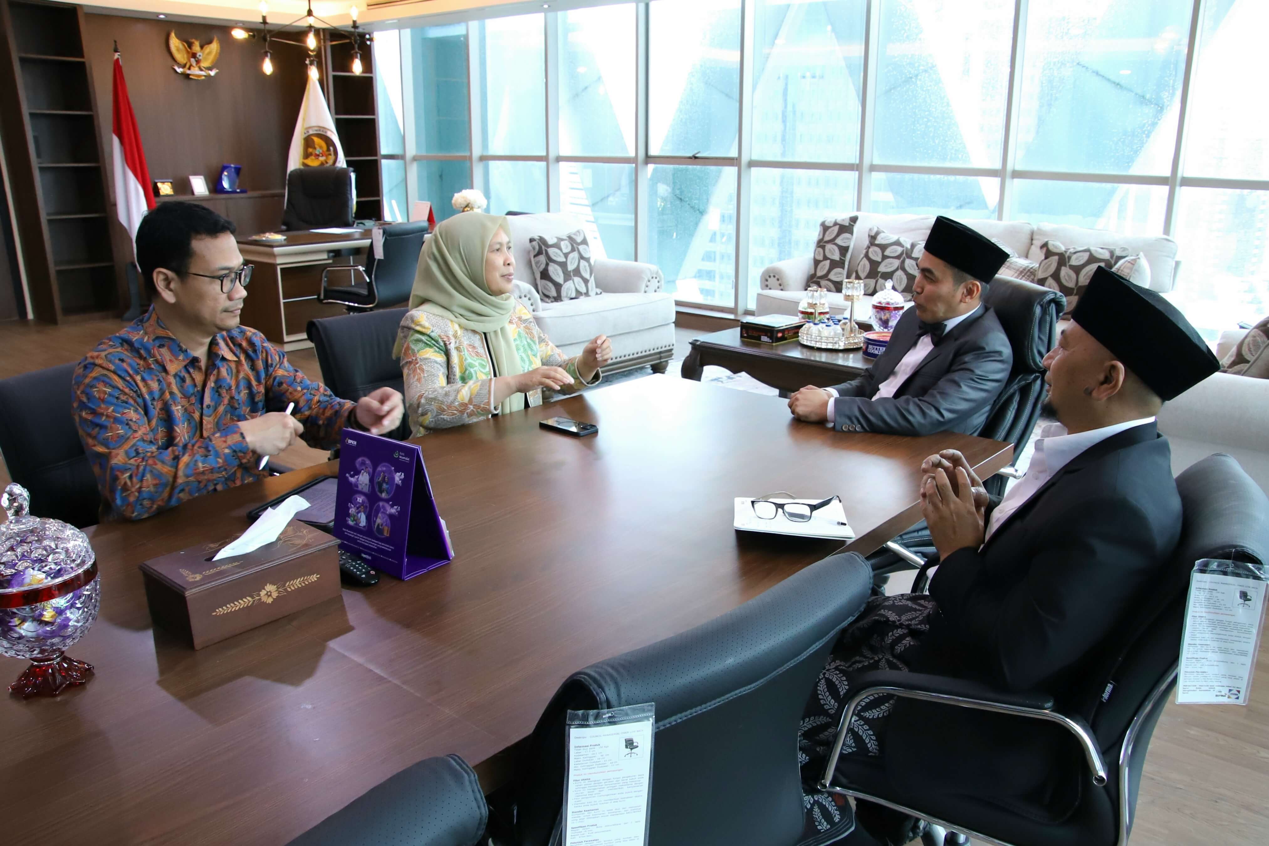 Direktur Jenderal Pengembangan Ekspor Nasional, Fajarini Puntodewi melakukan pertemuan dengan Direktur Jenderal Pengembangan Ekosistem Ekonomi Haji dan Umrah, Jaenal Effendi di kantor Kementerian Haji dan Umrah Jakarta pada Kamis, (29 Jan). Pertemuan ini bertujuan untuk membahas kerjasama antar lembaga dalam pengembangan dan promosi ekspor produk Indonesia dalam ekosistem haji. Pada kesempatan ini Dirjen Puntodewi menyampaikan bahwa kemendag siap bekerjasama dan berkolaborasi dalam mendorong pengembangan produk Indonesia guna pemenuhan kebutuhan haji. Pihak Kemenhaj menyampaikan kebutuhan akan produk Indonesia untuk untuk mendukung operasional dapur-dapur Haji di Mekkah dan Madinah. Kemenhaj juga mewajibkan penggunaan produk dan bahan baku yang berasal dari Indonesia, khususnya beras dan bumbu dapur. Turut hadir dalam pertemuan, Sekretaris Dirjen Pengembangan Ekosistem Ekonomi Haji dan Umrah, Cecep Khairul Anwar; Direktur Fasilitasi Kemitraan Pengembangan Ekosistem Haji dan Umrah, Tri Hidayatno; dan Direktur Pengembangan Ekspor Produk Primer, Miftah Farid.