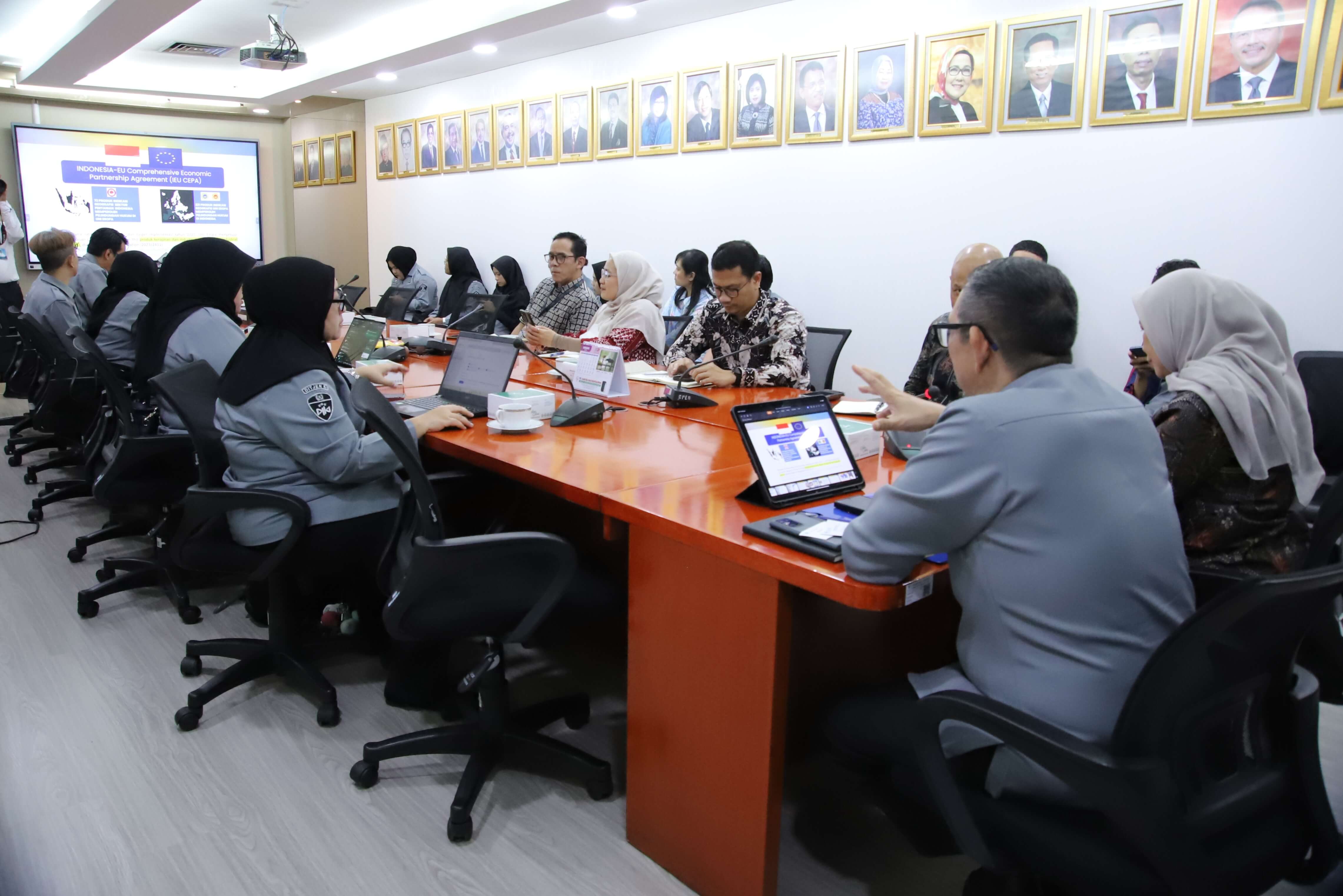 Direktur Jenderal Pengembangan Ekspor Nasional, Fajarini Puntodewi menerima kunjungan Direktur Jenderal Kekayaan Intelektual Kementerian Hukum, Hermansyah Siregar di kantor Kemendag Jakarta pada Selasa (20 Jan). Kegiatan ini membahas kolaborasi antara Ditjen PEN Kemendag dan Ditjen KI Kementerian Hukum dalam mendorong pemanfaatan indikasi geografis produk Indonesia sebagai penggerak ekspor nasional. Dirjen Hermansyah menyampaikan bahwa Direktorat Jenderal Kekayaan Intelektual Kementerian Hukum saat ini memfokuskan kebijakan pada pemanfaatan indikasi geografis sebagai penggerak ekspor nasional. Fokus ini ditekankan untuk memastikan setiap perlindungan hukum yang diberikan diikuti dengan pemanfaatan yang memberikan dampak ekonomi bagi masyarakat serta daerah penghasil. Pada kesempatan ini Dirjen Puntodewi memperkenalkan program UMKM BISA Ekspor dan Desa Bisa Ekspor. Dengan kolaborasi melalui program ini diharapkan membuka peluang produk dengan indikasi geografis dari daerah dapat naik kelas dan menembus pasar global. Turut hadir dalam kegiatan ini Direktur Sekretaris Direktorat Jenderal Pengembangan Ekspor Nasional Arief Wibisono dan Direktur Pengembangan Ekspor Produk Primer Miftah Farid.