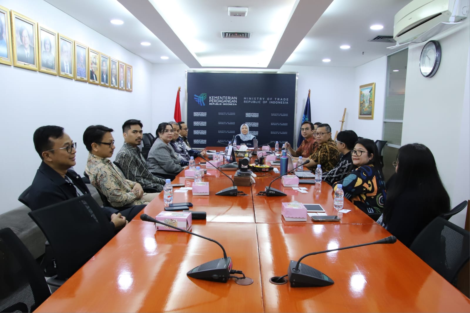 Direktur Jenderal Pengembangan Ekspor Nasional Fajarini Puntodewi menerima Perhimpunan Riset Pemasaran Indonesia (PERPI) di Kantor Kementerian Perdagangan Jakarta pada Selasa (23/12). Dalam pertemuan dibahas peluang kerjasama dalam melakukan riset pemasaran untuk produk ekspor Indonesia. Dirjen PEN menekankan bahwa pasar ekspor bergerak cukup dinamis dan sensitif terhadap perubahan selera dan trend. Untuk itu riset pasar yang akurat sangat diperlukan, terlebih untuk memperkuat produk lokal yang diharapkan mampu menembus pasar global. Perhimpunan Riset Pemasaran Indonesia merupakan asosiasi perusahaan riset yang beranggotakan lebih dari 50 perusahaan riset pemasaran di Indonesia. Turut hadir dalam kegaitan ini Direktur Pengembangan Pasar dan Informasi Ekspor Bayu Wicaksono Putro.