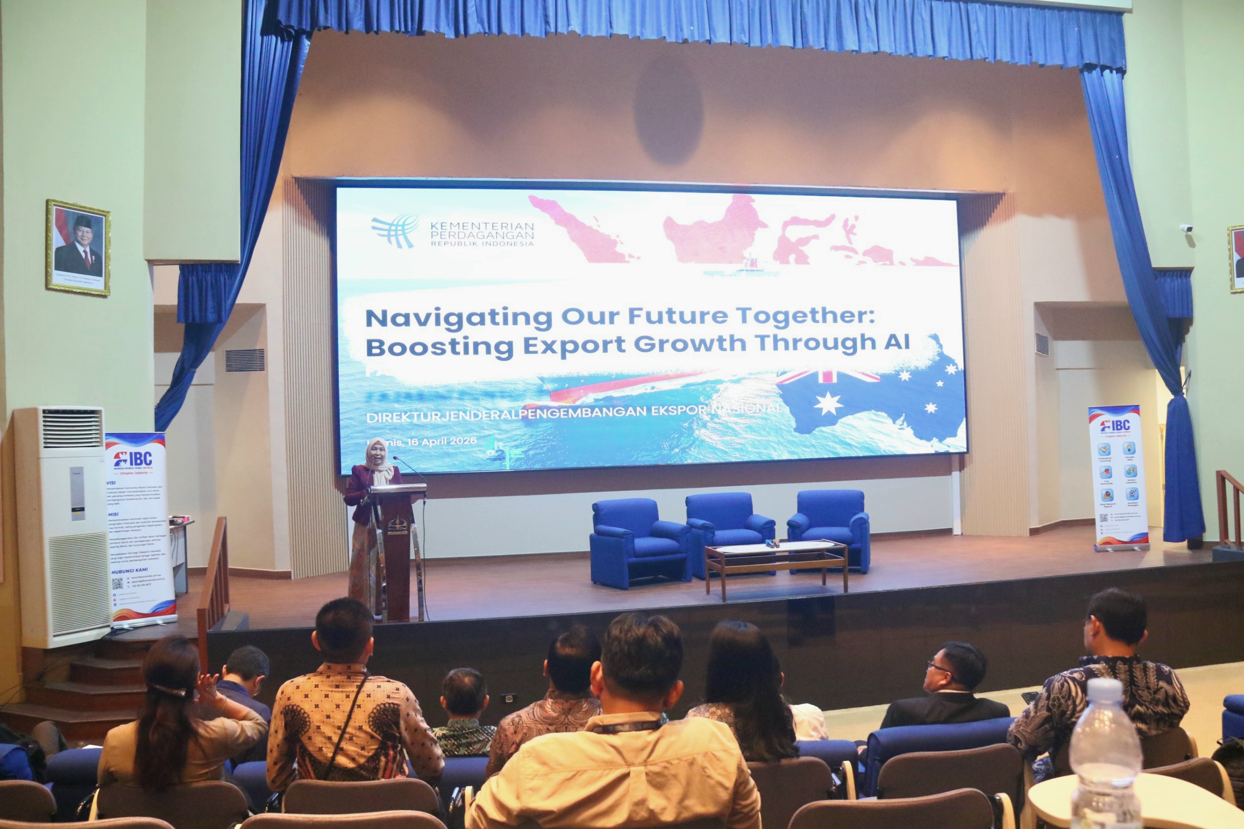 Direktur Jenderal Pengembangan Ekspor Nasional, Fajarini Puntodewi menjadi pembicara kunci pada seminar “Navigating Our Future Together: Boosting Export Growth Through AI” yang diselenggarakan IBC Australia Chapter Jakarta bekerja sama dengan Universitas Trisakti bertempat di Jakarta, Kamis (16 Apr). Dalam kesempatan ini, Dirjen Puntodewi menegaskan pentingnya memperkuat strategi perluasan ekspor di tengah tantangan global, sekaligus mendorong pemanfaatan teknologi, termasuk kecerdasan artifisial (AI) untuk mendukung kesiapan ekspor pelaku usaha nasional. Dirjen PEN menyampaikan bahwa Australia memiliki posisi penting dalam strategi perluasan ekspor Indonesia, didukung oleh implementasi IA-CEPA yang membuka akses pasar lebih luas bagi produk Indonesia. Terkait pemanfaatan AI, Dirjen PEN menegaskan harus diarahkan untuk menjawab kebutuhan riil pelaku usaha, khususnya UMKM, mulai dari membaca tren pasar, memahami preferensi konsumen, memperkuat promosi, hingga meningkatkan ketepatan komunikasi dengan buyer internasional. Berbagai instrumen penguatan ekspor juga disiapkan Kemendag, antara lain UMKM BISA Ekspor, Cek Ekspor, dan Campuspreneur. Selanjutnya, Dirjen PEN juga mengundang seluruh mitra strategis untuk berpartisipasi dalam Trade Expo Indonesia 2026 yang akan diselenggarakan pada 14–18 Oktober 2026 di ICE BSD City, sebagai panggung promosi strategis bagi produk Indonesia di pasar global. Seminar ini turut dihadiri oleh sejumlah pimpinan dan perwakilan lembaga, antara lain perwakilan Trisakti Marketing Club (TMC), Eric Pradjonggo; President ASBF, Kristoforus Hendra Djaya; President IBC Australia, Josep Rustam; Rektor Universitas Trisakti, Prof. Dr. Ir. Kadarsah Suryadi, DEA; serta Founder & Chair of MCorp, Hermawan Kartajaya.