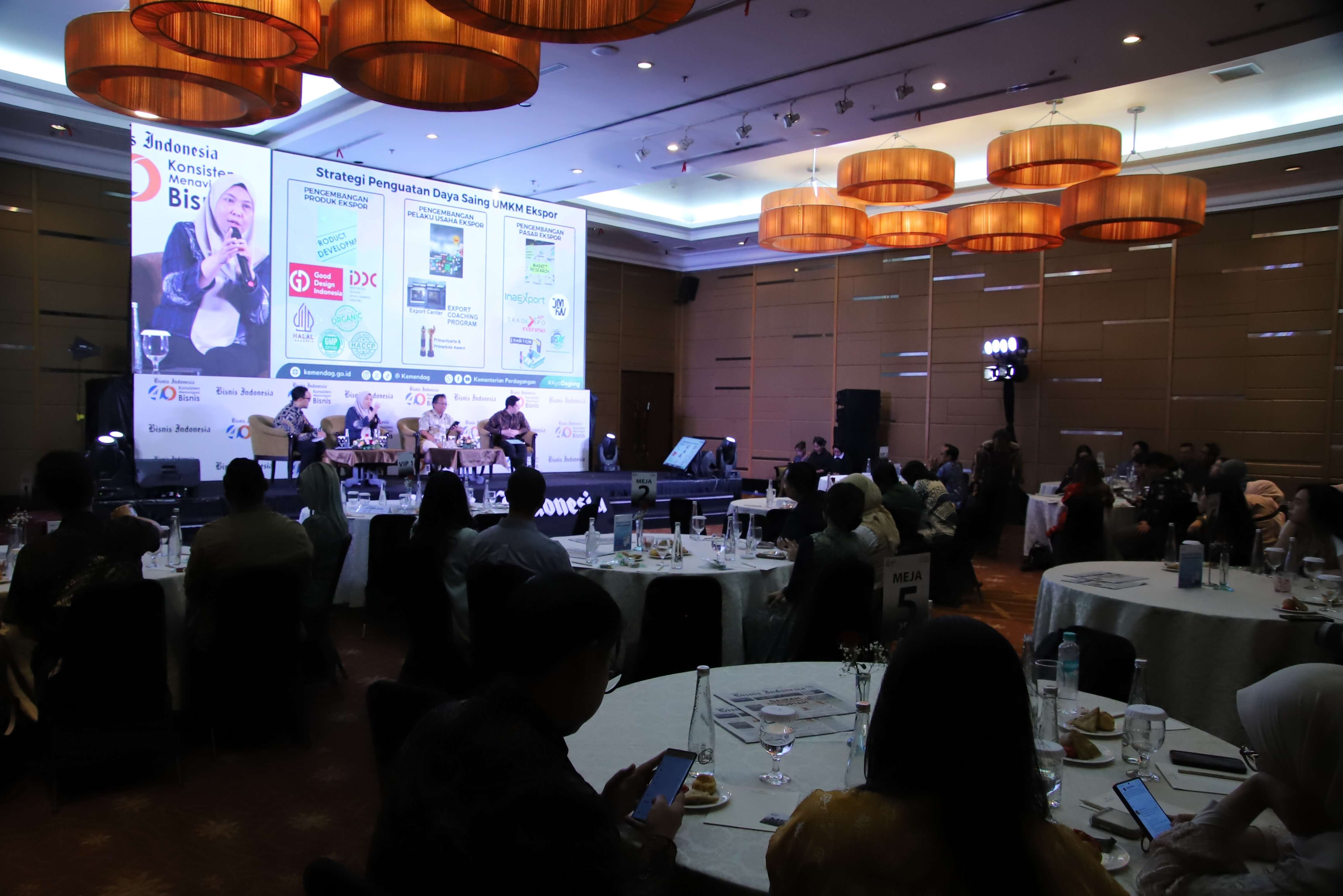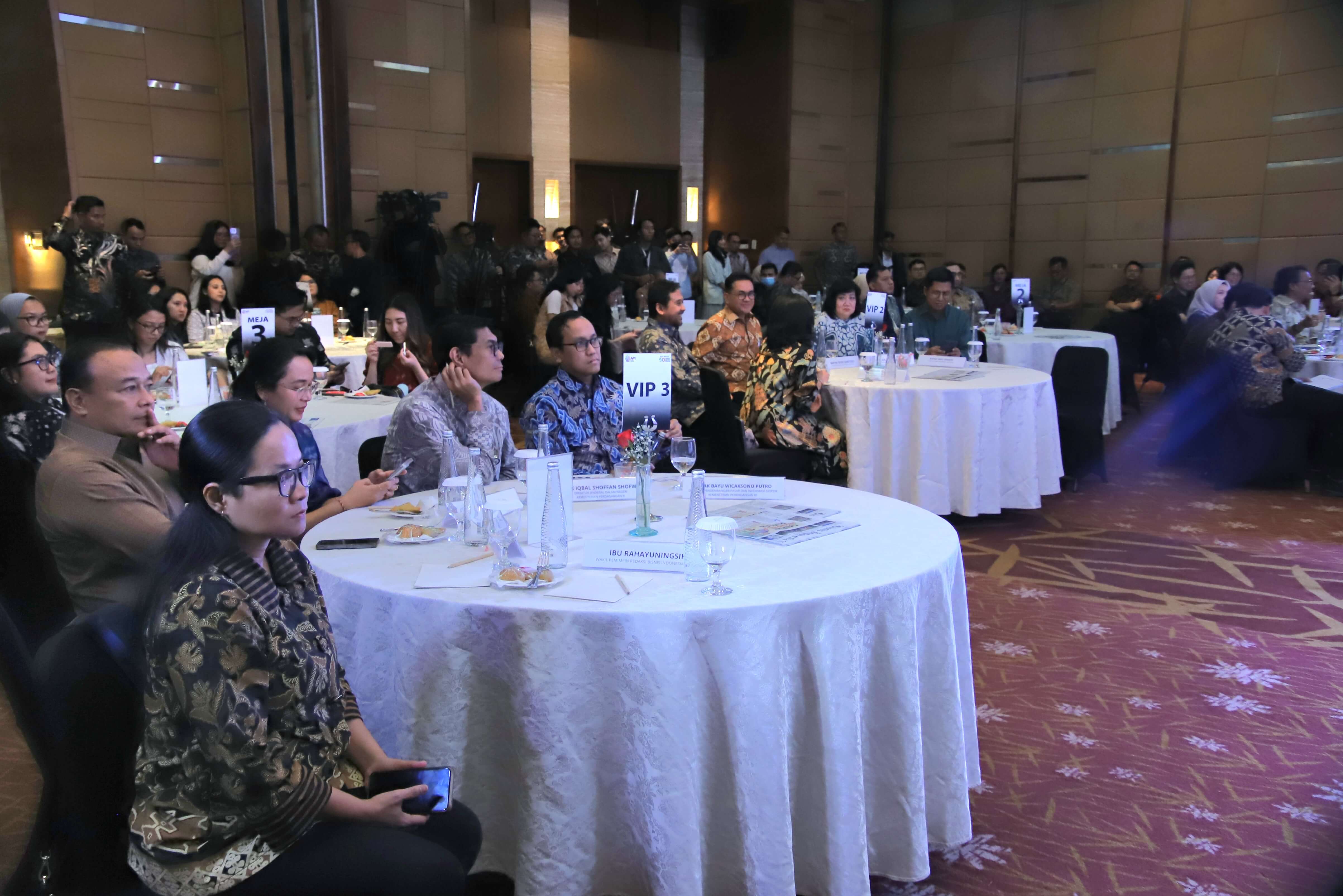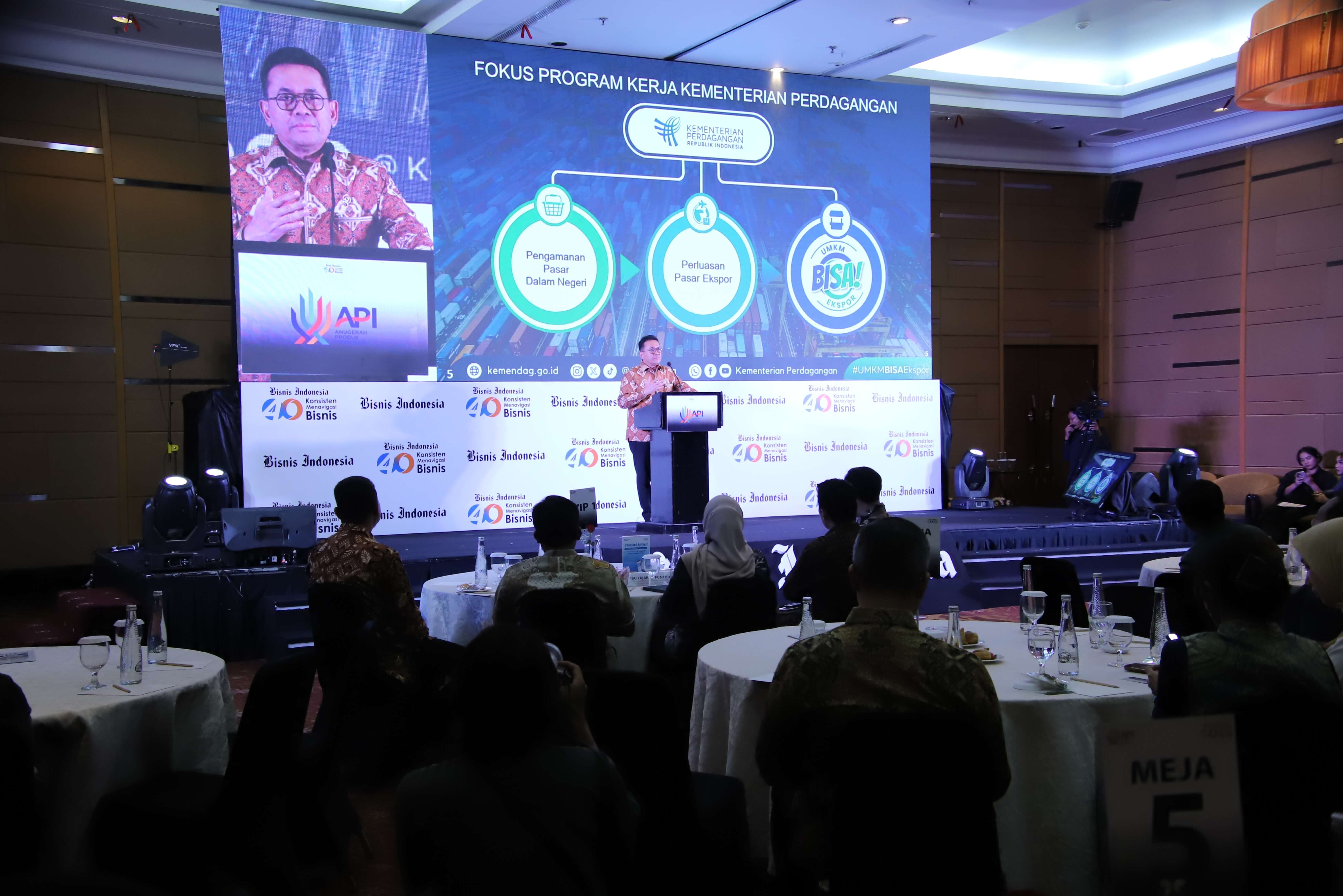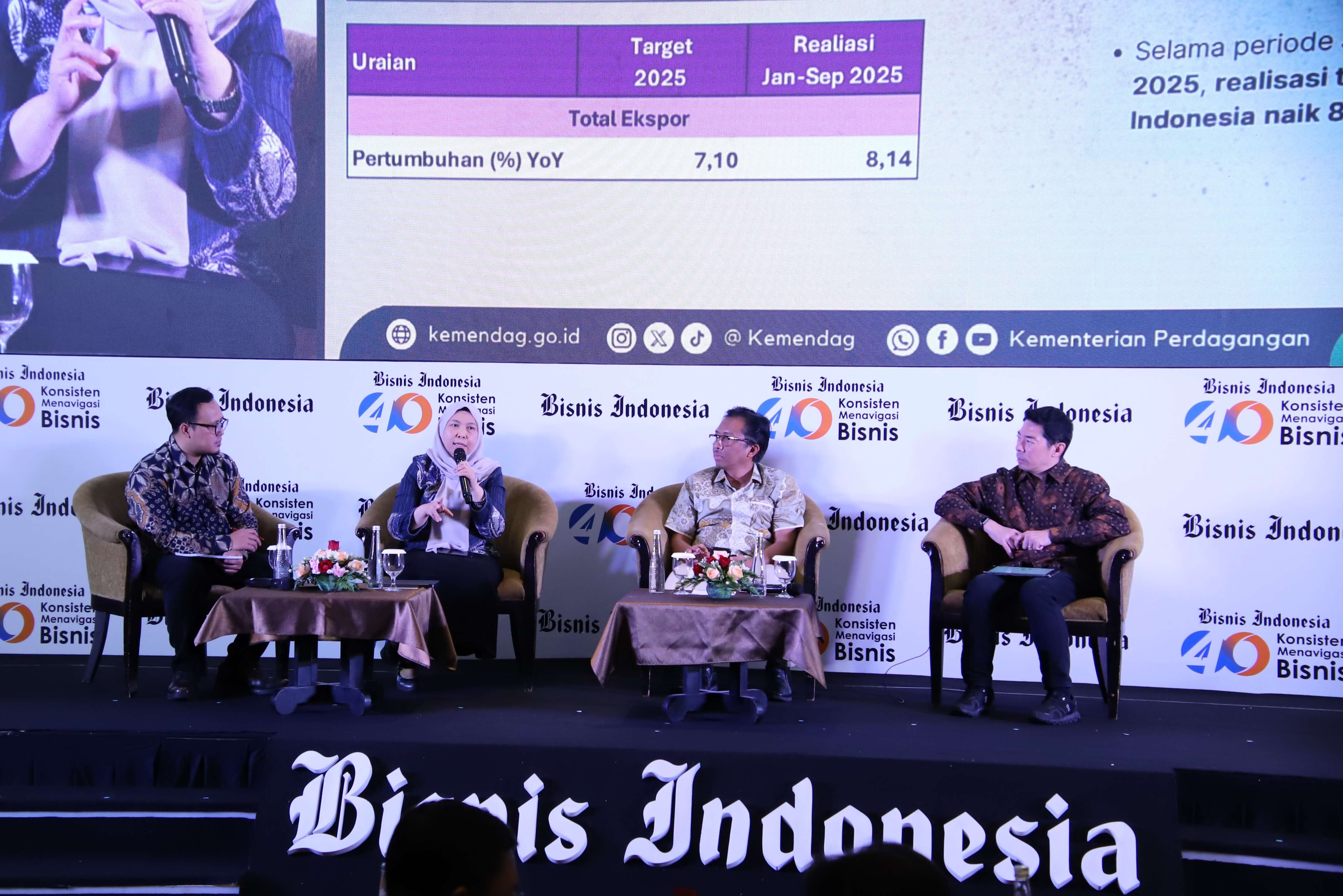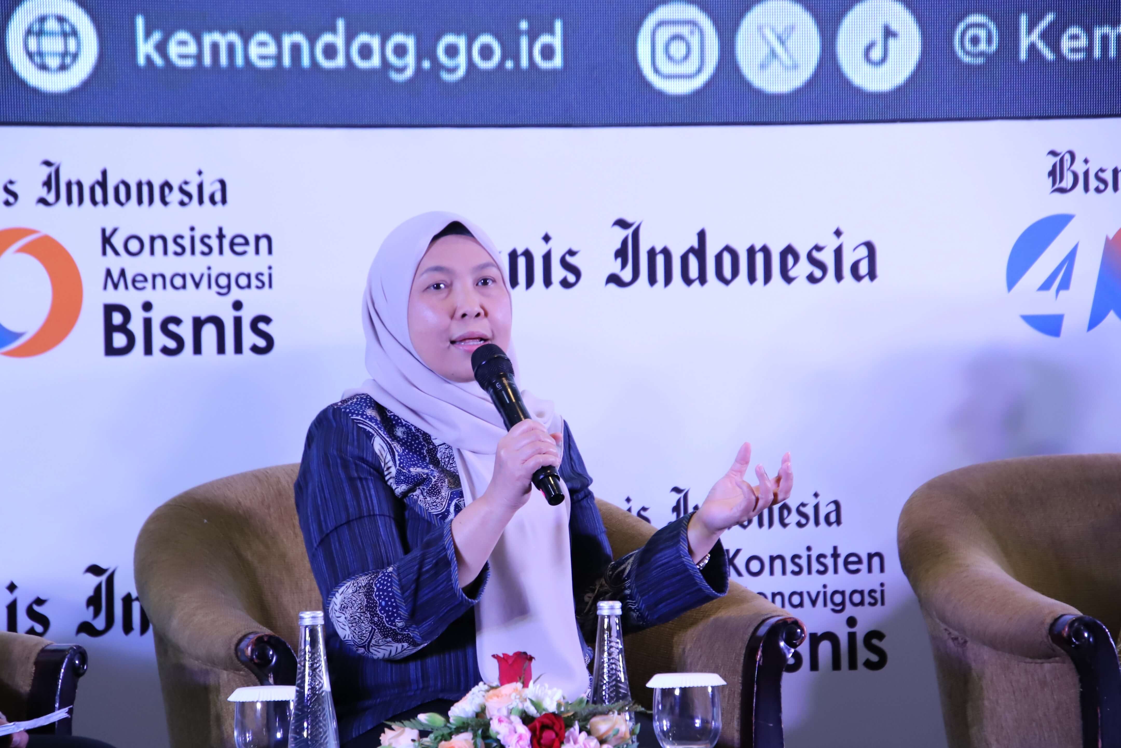Direktur Jenderal Pengembangan Ekspor Nasional Fajarini Puntodewi, menjadi pembicara pada kegiatan Gelar Wicara Anugerah Produk Indonesia 2025 di Jakarta, Selasa (11 Nov). Gelar Wicara dengan tema Membangun Sinergi antara Dunia Usaha dan UMKM untuk Pertumbuhan Ekonomi Nasional ini merupakan rangkaian kegiatan Anugerah Produk Indonesia 2025 yang digelar oleh Bisnis Indonesia. Kegiatan Anugerah Produk Indonesia 2025 dibuka oleh Menteri Perdagangan Budi Santoso. Pada kesempatan ini Dirjen Puntodewi menyampaikan paparan tentang peran Kementerian Perdagangan dalam kolaborasi dan inovasi UMKM untuk mendukung pertumbuhan ekonomi nasional. Kegiatan ini juga menghadirkan narasumber lainnya yaitu Deputi Bidang Usaha Menengah Kementerian UMKM Bagus Rachman dan Ketua Bidang UMKM, Asosiasi Pengusaha Indonesia (APINDO) Ronald Walla. Turut hadir dalam kegiatan ini Direktur Jenderal Perdagangan Dalam Negeri, Iqbal Shoffan Shofwan; Direktur Pengembangan Pasar Dan Informasi Ekspor, Bayu Wicaksono Putro serta Kepala Biro Hubungan Masyarakat, N.M. Kusuma Dewi.