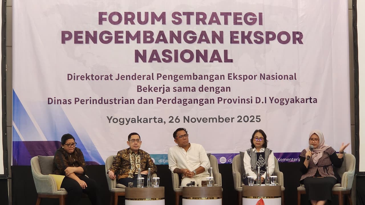 Direktur Jenderal Pengembangan Ekspor Nasional, Fajarini Puntodewi, membuka Forum Strategi Pengembangan Ekspor di Yogyakarta, Daerah Istimewa Yogyakarta (DIY), pada Rabu (26 Nov). Kegiatan ini diikuti oleh para pelaku usaha berorientasi ekspor dan juga para pemangku kepentingan terkait di seluruh wilayah DIY. Forum bertujuan untuk memperkenalkan peluang pasar dan program-program pengembangan ekspor serta meningkatkan kolaborasi untuk meningkatkan daya saing produk unggulan DIY. Dalam sambutannya, Dirjen PEN menyampaikan pentingnya kolaborasi antar pemangku kepentingan untuk meningkatkan ekspor dari daerah guna mendukung pertumbuhan ekonomi dan kesejahteraan. Kementerian Perdagangan telah menyiapkan program penguatan daya saing melalui UMKM BISA ekspor dimana para pelaku usaha dapat memanfaatkan fasilitas pengembangan produk, pelaku usaha, dan pasar ekspor dimana salah satunya melalui kegiatan pitching dan business matching. Sebagai narasumber dalam forum adalah perwakilan Direktorat Pengembangan Pasar dan Informasi Ekspor, perwakilan Direktorat Pengembangan Produk Manufaktur, perwakilan Sekretariat Ditjen Perundingan Perdagangan Internasional, perwakilan pelaku usaha ekspor, dan dipandu oleh perwakilan Dinas Perindag Provinsi DIY. Turut hadir dalam kesempatan ini, yaitu Inspektur Jenderal Kemendag, Putu Jayan Danu Putra; Direktur Pengembangan Ekspor Jasa dan Produk Kreatif, Ari Satria; Kepala Dinas Perindustrian dan Perdagangan Provinsi DIY, Yuna Pancawati, dan Wakil Ketua Kadin DIY Bidang Organisasi dan Kelembagaan, Robby Kusumaharta.