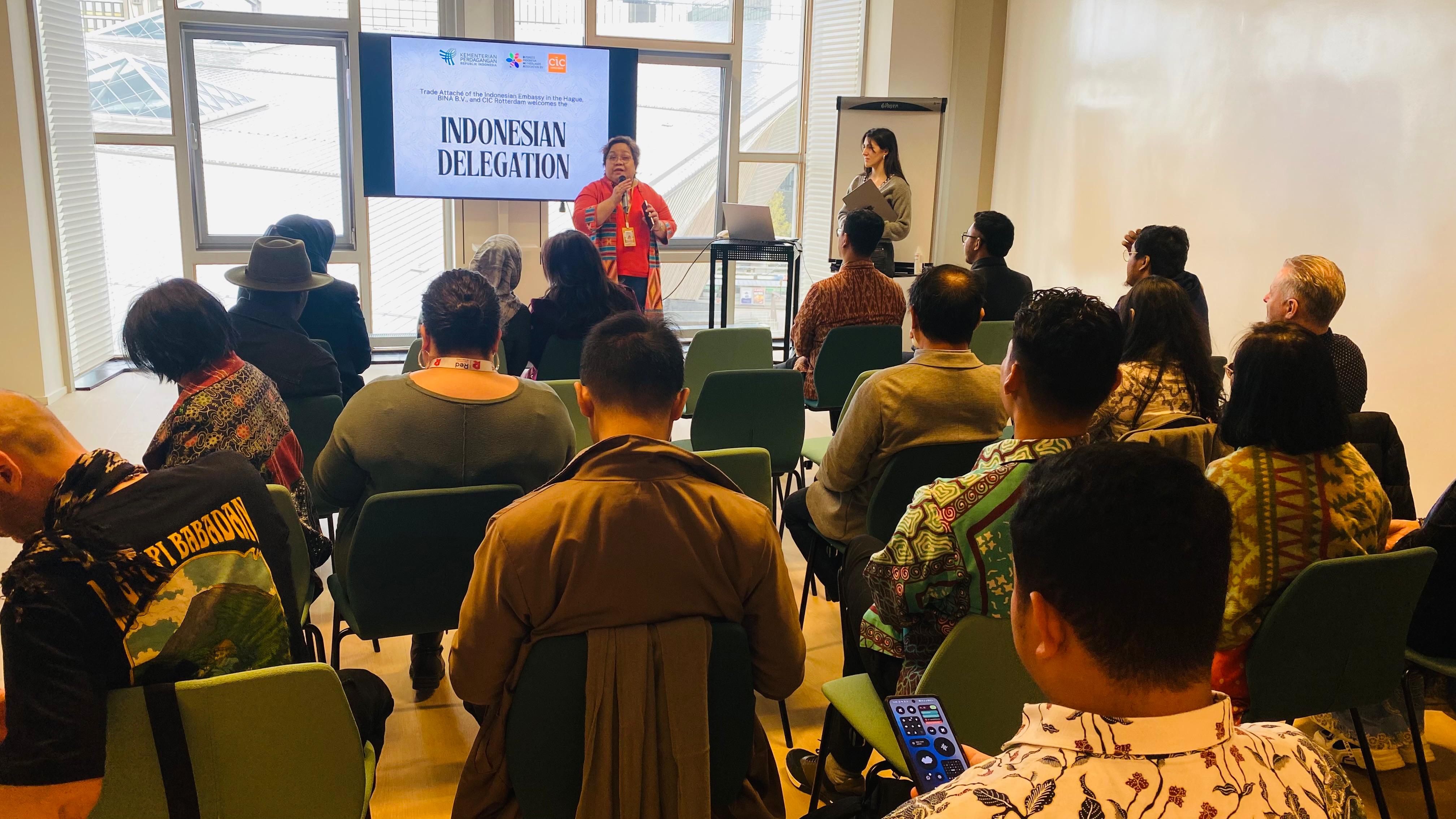 Dalam rangkaian misi dagang, Direktur Jenderal Pengembangan Ekspor Nasional Fajarini Puntodewi mengunjungi importir makanan olahan di Rotterdam BINA BV, pada Jumat (31 Okt). Pada kesempatan tersebut turut hadir perwakilan dari CIC Rotterdam yang merupakan start up yang membantu perusahaan melakukan inovasi dan promosi usaha. BINA BV juga melakukan business matching dengan para peserta misi dagang untuk produk andaliman, bumbu jadi, dan lada hitam. Pada kesempatan yang sama turut hadir buyer dari Perancis dan bertemu dengan perusahaan Indonesia.