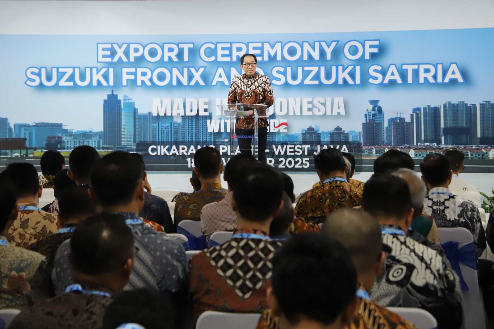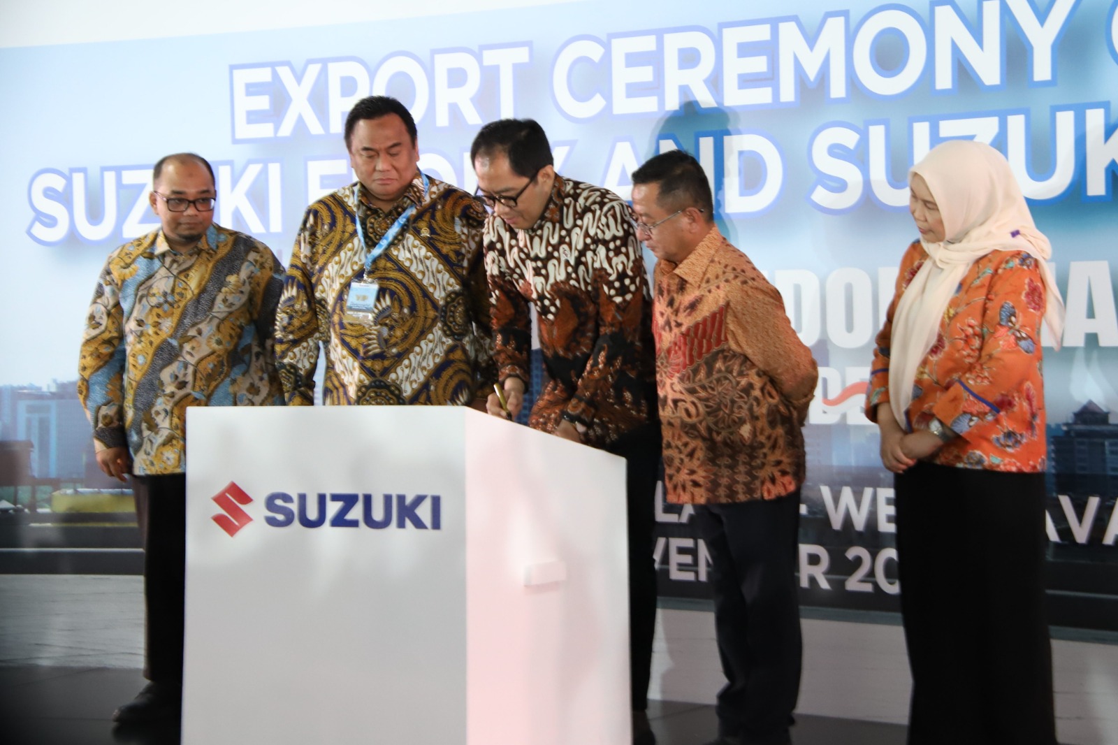 Direktur Jenderal Pengembangan Ekspor Nasional, Fajarini Puntodewi hadir dalam rangkaian pelepasan ekspor kendaraan bermotor produksi PT Suzuki Indomobil Motor ke pasar ASEAN di Cikarang pada Selasa, (18 Nov). Pelepasan ekspor dipimpin oleh Wakil Menteri Perindustrian, Faisol Riza. Produk yang diekspor berupa kendaraan roda empat Suzuki Fronx dan kendaraan roda dua Suzuki Satria F150 ke Kamboja, Laos, Malaysia, Filipina, Thailand dan Vietnam. Suzuki Motor Corporation Jepang beroperasi di Indonesia melalui PT Suzuki Indomobil Motor (SIM) yang bertindak sebagai agen tunggal pemegang merek (ATPM) sekaligus produsen dan PT Suzuki Indomobil Sales (SIS) sebagai distributor utama. Kegiatan bisnis Suzuki di Indonesia mencakup produksi, penjualan, dan ekspor kendaraan roda empat, roda dua, serta suku cadangnya. Turut hadir dalam kegiatan ini Dirjen ILMATE Kemenperin, perwakilan Kedutaan Jepang di Jakarta, perwakilan pemerintah Kabupaten Bekasi, perwakilan Komisi VI DPR RI, serta perwakilan Gabungan Industri Kendaraan Bermotor Indonesia (GAIKINDO) dan Asosiasi Industri Sepeda Motor Indonesia (AISI).